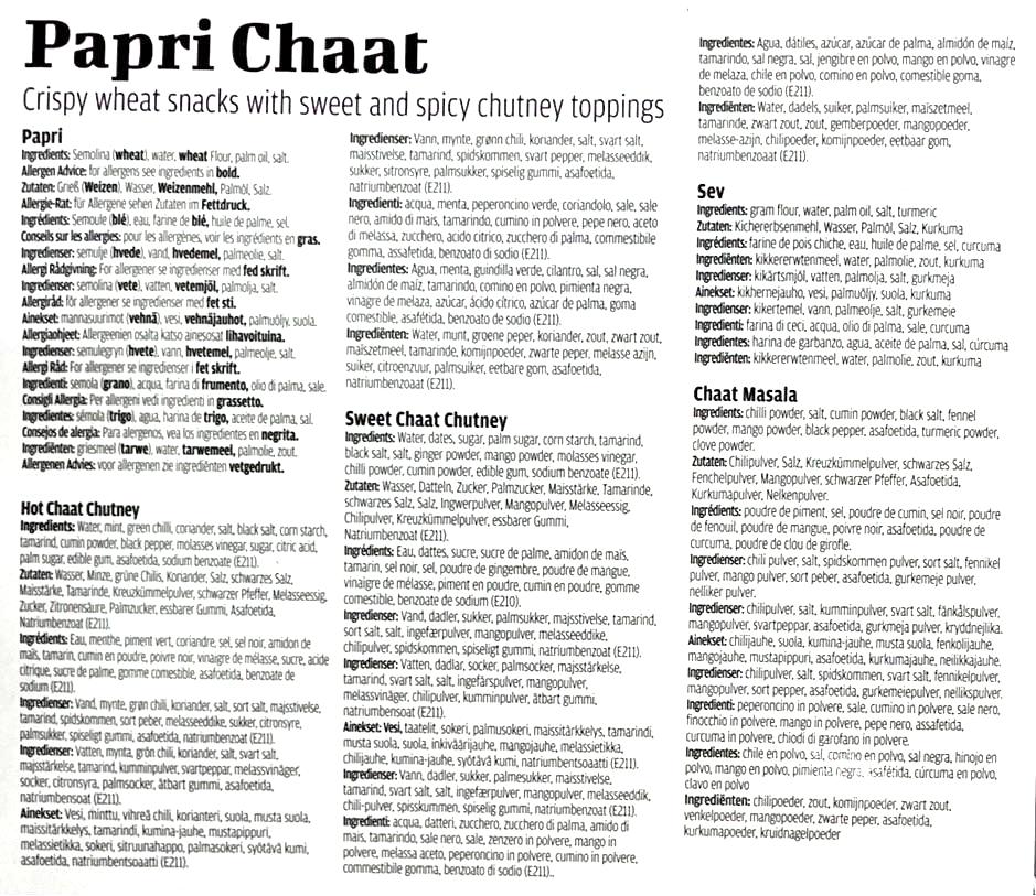 This kit Contains 90g Papri, Hot Chat Chutney, Sweet Chat Chutney, Sev, Chaat Masala.
